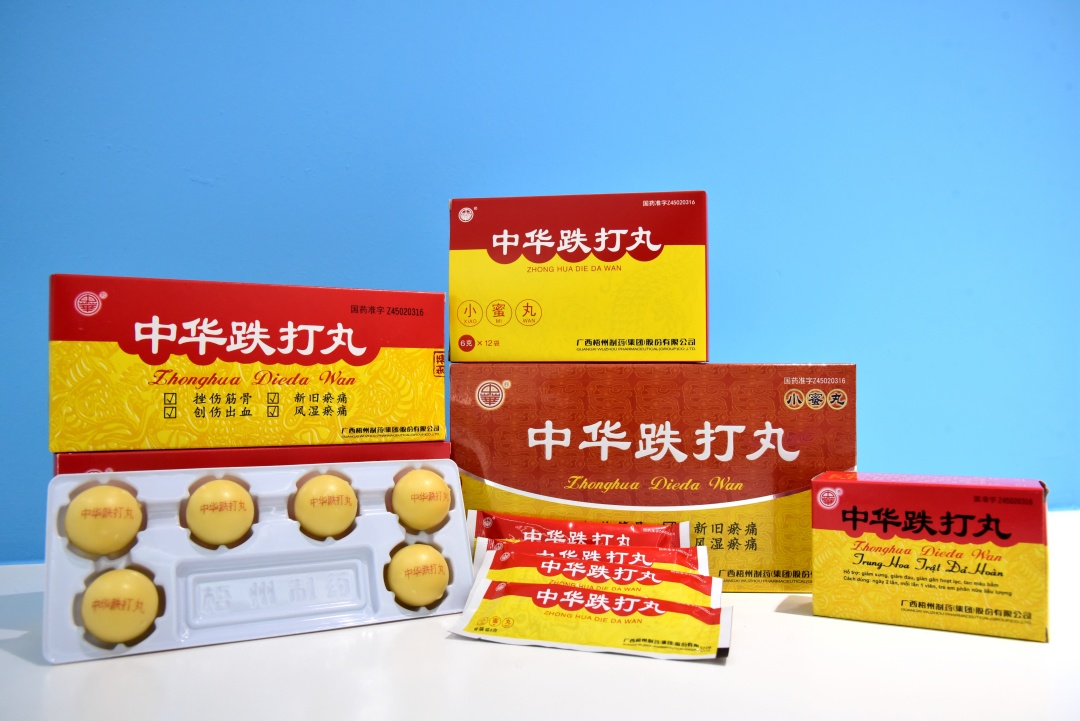 百年傳承發(fā)展路,新時代綻放新光彩。中華跌打丸源于南少林寺古方,其制作技藝在梧州傳承與發(fā)展的過程中融入了民間智慧,運(yùn)用傳統(tǒng)中醫(yī)辨證論治,遵循四氣五味、君臣佐使、正治反治的獨(dú)特法則,采用32味中草藥經(jīng)清洗、干燥、粉碎、煉蜜、混粉、制丸等20多道工序制成,對挫傷筋骨,新舊瘀患,風(fēng)濕疼痛,創(chuàng)傷出血療效卓著。經(jīng)過多代人的不斷傳承、創(chuàng)新和技術(shù)攻關(guān),中華跌打丸譽(yù)滿全國,被列為國家中藥保護(hù)品種,獲“中華老字號”產(chǎn)品稱號,享有“中華民族醫(yī)藥瑰寶”的美譽(yù),為傳統(tǒng)中醫(yī)藥發(fā)展歷史提供了標(biāo)志性范本,具有重要的歷史價值。
