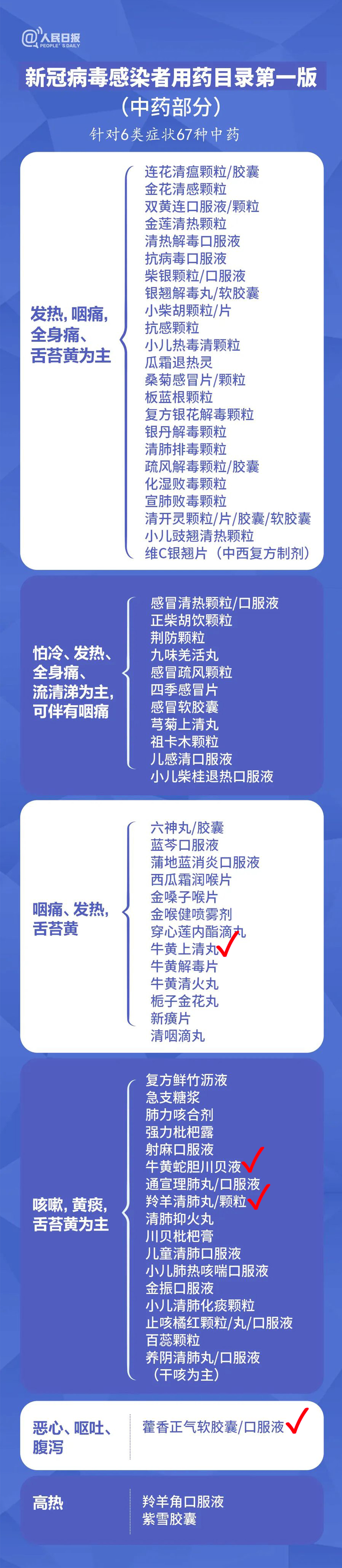 此版用藥目錄按照中西藥分開的原則,是對(duì)國(guó)家第九版診療方案中推薦用藥的完善和補(bǔ)充,針對(duì)發(fā)熱、咽痛等6類中醫(yī)診斷癥狀推薦67個(gè)中藥品種;針對(duì)咳嗽、咳痰等4類臨床癥狀推薦41個(gè)西藥品種。