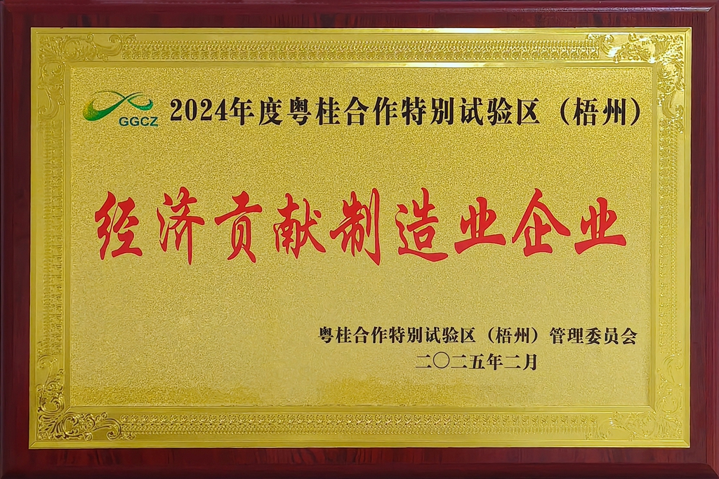 廣西梧州制藥(集團(tuán))股份有限公司獲評(píng)2024年度粵桂合作特別試驗(yàn)區(qū)(梧州)經(jīng)濟(jì)貢獻(xiàn)制造業(yè)企業(yè)”