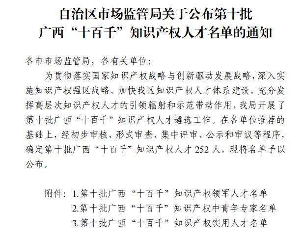 此次入選第十批廣西“十百千”知識產(chǎn)權(quán)人才名單,不僅是對兩名同志在知識產(chǎn)權(quán)領(lǐng)域所取得成績的肯定,更是對梧州制藥近年來深入貫徹廣西知識產(chǎn)權(quán)“十百千”人才工程建設(shè)要求,積極打造高素質(zhì)專業(yè)化的知識產(chǎn)權(quán)人才隊伍的認可和鼓勵。
